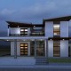 A tropical inspired residence featuring slanted columns that are aesthetically appealing and structurally stable.