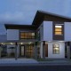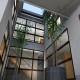 Narrower windows located on the perimeter walls control the flow of direct heat and permit cross-ventilation. Adjustable ventilating louvers between the roof and 2nd floor window header complete the theme of passive cooling.